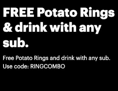 Free Potato Rings and drink with any sub. Use code: RINGCOMBO โ