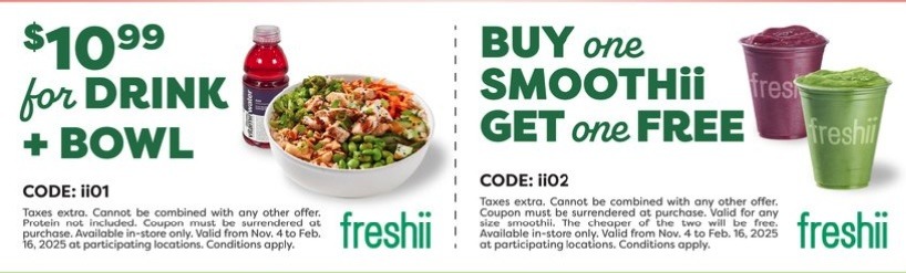 Freshii – Current Offers – Including Free Combo Deals