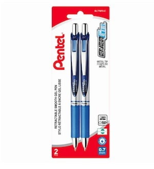 Pentel Energel Liquid Gel Pens, Retractable, 0.7mm, Blue, 2 Pack